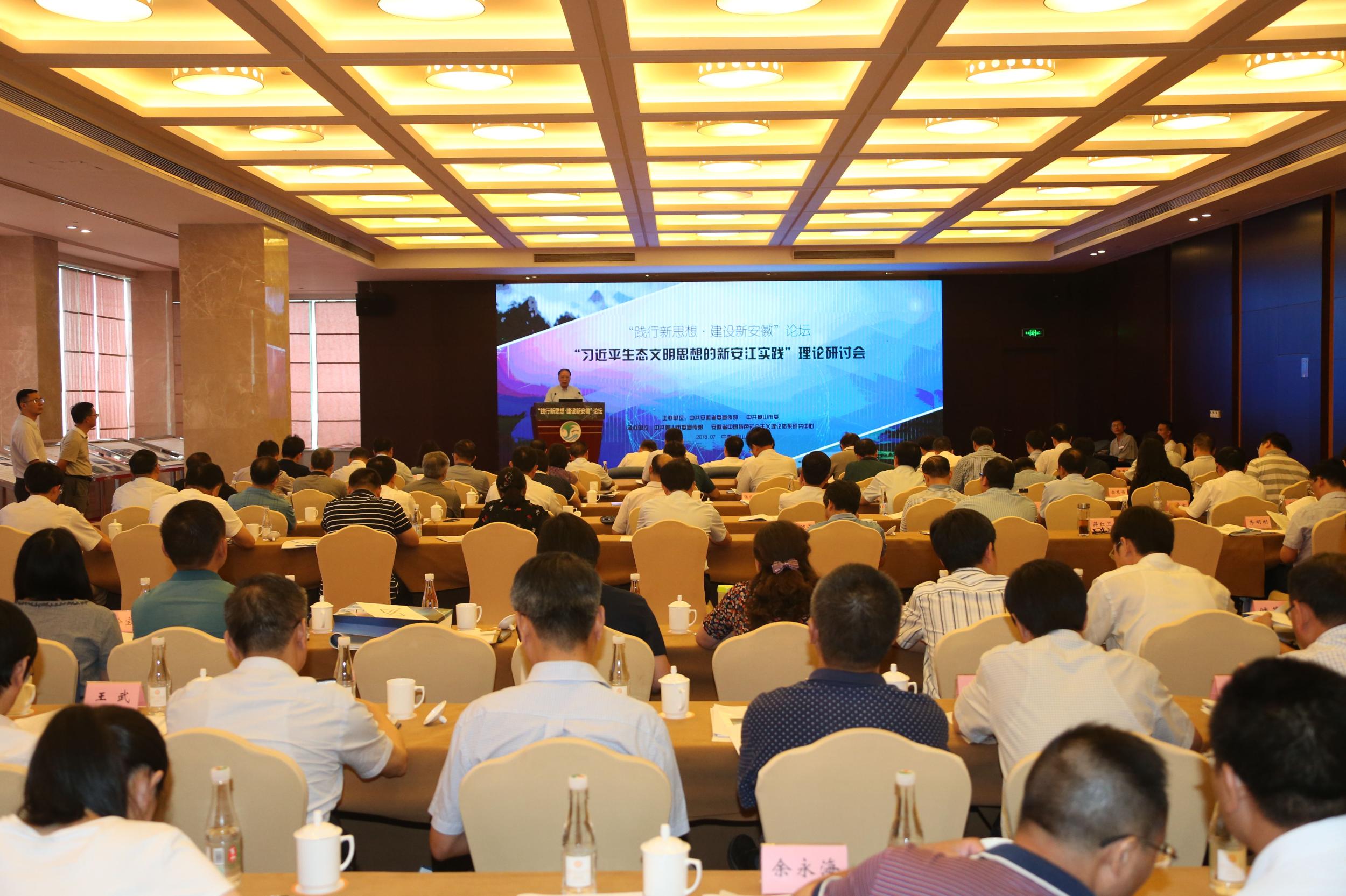 7月26日下午至27日上午,由中共安徽省委宣传部、中共黄山市委主办,中共黄山市委宣传部、安徽省中国特色社会主义理论体系研究中心承办的“践行新思想·建设新安徽”论坛年度第三场理论研讨会“习近平生态文明思想的新安江实践”在黄山市举行。省委常委、宣传部长虞爱华作书面发言,省委宣传部副部长洪永平主持会议并作总结,黄山市委书记任泽锋出席会议并致辞。